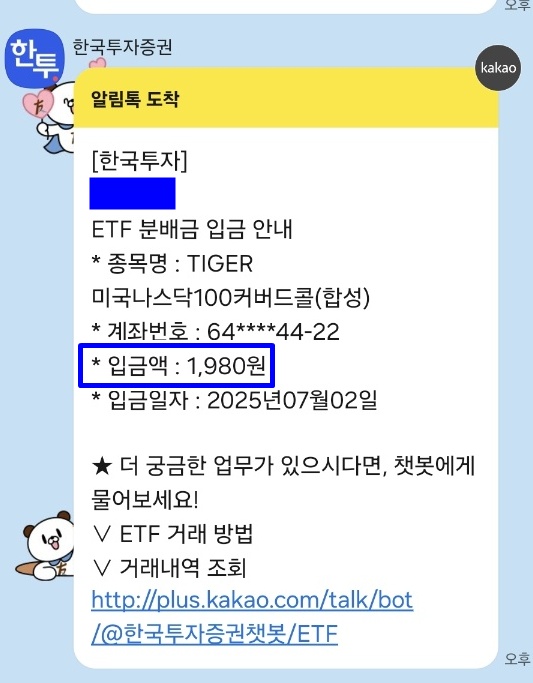 ✔️ 매달 입금된 배당금은 TIGER 미국나스닥100커버드콜에 전액 자동 재투자합니다.
