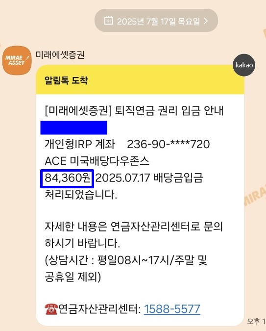 2025년 7월에도 연금계좌에서 배당금이 꾸준히 입금됐습니다.